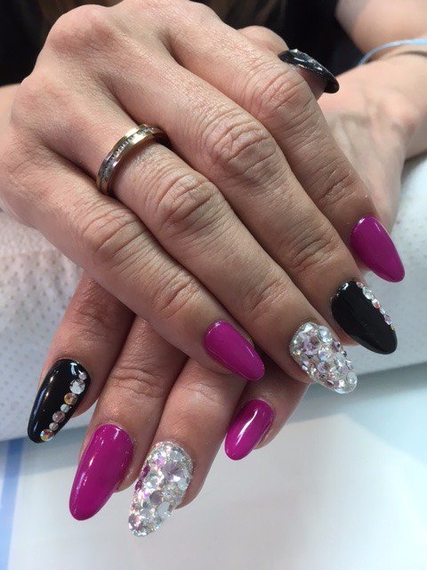 黒 ピンク ストーンアートネイル 青森市のネイルサロン まつ毛エクステサロンクラウンローズのブログ